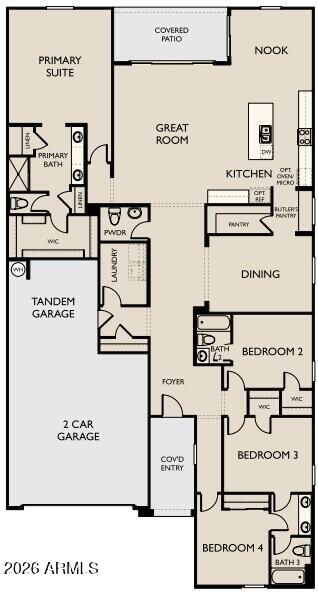 Listing details for 15602 Onyx Ave, Waddell, AZ 85355 : Welcome to Stonebridge Manor in Waddell, where thoughtful design meets everyday living. The Jade floor plan offers 2,629 sq. ft. with 4 bedrooms, 3.5 baths, and a 3-car tandem garage, blending space, comfort, and versatility. Designed with our Timeless Collection, this home features a bright, elegant palette of whites and soft grays for a clean, classic feel. The gourmet kitchen is the centerpiece, showcasing 42'' white shaker cabinetry, satin nickel hardware, quartz countertops, an electric cooktop with ample storage for pots and pans below, built-in oven and microwave. Plank tile flows through main areas with plush carpet in bedrooms. A 4-panel sliding glass door opens to a covered patio for seamless indoor-outdoor living, complemented by 8' interior doors throughout.