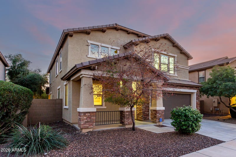 Listing details for 15603 Jenan Dr, Surprise, AZ 85379 : Become the proud owner of this charming 4-bedroom home in Greer Ranch! You're greeted by a 3-car garage, tasteful stone accents, & a front patio that sets an inviting atmosphere. Inside, you'll find a versatile den ideal for an office or a cozy lounge. Fall in love w/ the spacious great room featuring high ceilings, a soothing palette, blinds, & stylish wood-look flooring for a timeless appeal. The impeccable kitchen comes w/ granite counters, crisp white cabinetry w/ crown moulding, pendant/recessed lighting, stainless steel appliances, a walk-in pantry, & an island w/ a breakfast bar for casual dining. Upstairs, the loft provides a versatile living space. The primary suite boasts a private bathroom w/ dual sinks & a convenient walk-in closet for an organized wardrobe. Enjoy enchanting sunsets in the stunning backyard, showcasing a view fence, covered patio, pavers, a lovely gazebo, & a built-in BBQ for weekend grills. Don't miss out on this incredible gem!
