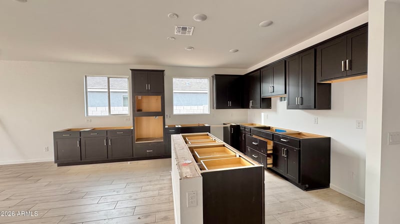 Listing details for 15621 Brown St, Waddell, AZ 85355 : Discover the elegant Opal RV floorplan, offering 2,123 sq. ft. of thoughtfully designed living space tailored for modern families. This exquisite single-story home features 4 bedrooms, a Den and 3bathrooms, and a 2-car tandem garage as well as an RV garage, providing ample space for work, relaxation, and entertainment.