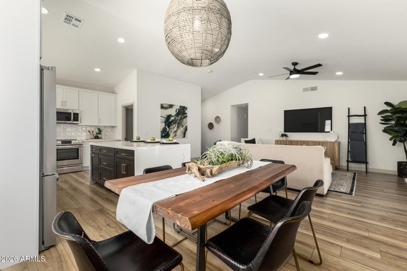 Listing details for 15641 63rd St, Scottsdale, AZ 85254 : Located in Scottsdale's sought-after 85254 ''Magic Zip Code''. Beautifully remodeled single-level 3-bedroom, 2-bath Scottsdale home with a private pool, fully renovated in 2023. The open floor plan features wood flooring, fresh neutral paint, recessed lighting, upgraded fixtures, and a cozy fireplace. The designer kitchen offers Calacatta-style waterfall quartz countertops, white shaker cabinetry with custom hardware, tile backsplash, stainless steel appliances, and an adjacent dining area. The light-filled primary suite includes dual closets and a spa-style bath with soaking tub, marble tile surround, and upgraded vanity. Enjoy a private backyard with fenced pool, covered patio, and low-maintenance desert landscaping.