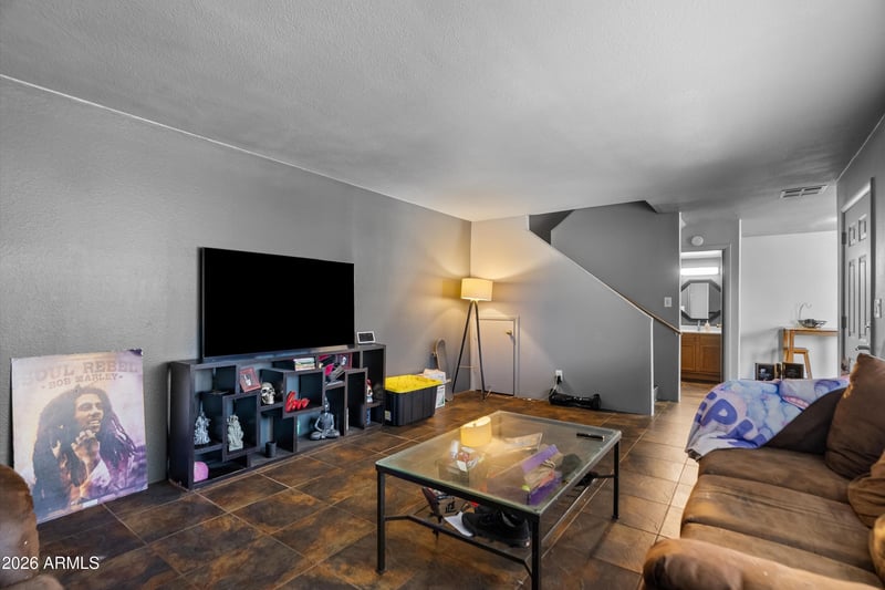 Listing details for 15650 19th Ave #1194, Phoenix, AZ 85023 : Two-story townhome on a rare oversized lot with private backyard and balcony. Interior features tile flooring throughout main living areas, stainless steel appliances, and a functional open layout. Primary suite offers dual vanities, separate shower and bath, and private balcony access. Secondary spaces are well-sized with good natural light. Property is move-in ready with potential. Large outdoor space is a standout feature, offering usable yard area uncommon for this property type. Great location with access to major roadways, retail, and dining.