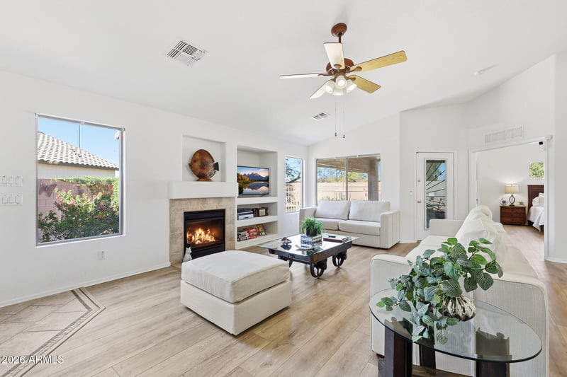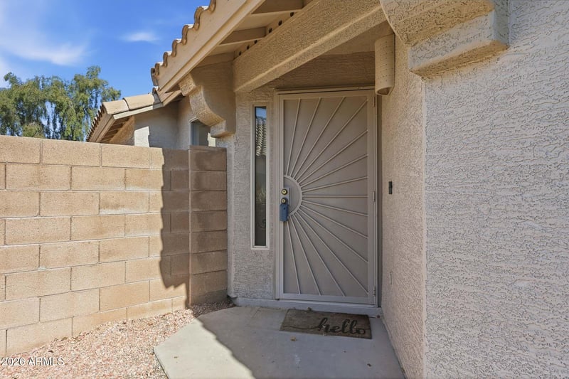 Listing details for 15688 Saguaro Ln, Surprise, AZ 85374 : Move-in ready, tastefully updated and well-maintained single-level home built in 2001. Features include fresh interior paint, nine new windows, luxury vinyl flooring throughout (no carpet), and beautiful quartz countertops. The home offers abundant natural light and a great, functional floorplan. Situated on a large lot with lush landscaping (including two citrus trees) and a private pool, ideal for relaxing or entertaining. Conveniently located near Loop 303 with easy access to dining, shopping, and entertainment. Monthly solar lease payment is a fixed $69 per month.