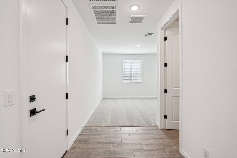 Step inside to an open-concept design where modern finishes create a cohesive, elevated feel. The kitchen makes a bold statement with our Foundry Collection details, featuring 42'' Grey cabinetry, Black Bronze accents, Pro Storm quartz countertops, and a striking 3'' x 10'' Bobo Cinder tile backsplash. Durable 7'' x 22'' wood-look plank tile runs throughout the main living areas, while plush carpeting in the bedrooms and den creates comfortable, quiet retreats.
