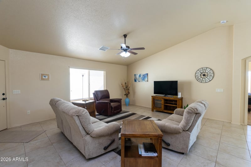 Listing details for 1573 Braddock Dr, Sierra Vista, AZ 85635 : Well-maintained and barely lived in! This original-owner 4 bedroom, 2 bathroom home offers 1,661 sq ft of comfortable living space with a 2 car garage and no HOA. No rear neighbors--backs to a wash and walking path with mountain views. Occupied an average of only five months per year and never home to pets or smokers. Desirable split floorplan provides excellent privacy. Features include tile flooring with carpet in the bedrooms, granite kitchen countertops, and stainless steel appliances. Conveniently located just minutes from Fort Huachuca. A rare opportunity for a truly gently lived-in home that's move-in ready. With an acceptable offer, all furnishings may convey, offering a turnkey opportunity for the next owner. Don't miss out on this one