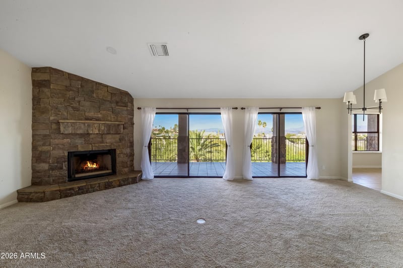 Listing details for 15746 Cholla Dr, Fountain Hills, AZ 85268 : Panoramic views that carry from room to room and patio to covered deck. All the costly areas are remodeled and updated. Ever bedroom has direct access to a bathroom with 4 of each and really a double master setup with two distinct living rooms, each with its own fireplace. This is the kind of floor plan that provides comfortable living for everyone. You'll also appreciate the expansive backyard and remodeled pool. The grill island and bar make outdoor entertaining easy. You'll also find the deck to be deep enough and more than comfortable to relax undercover instead of the rarely used rooftop options you see elsewhere. New exterior paint 2026.