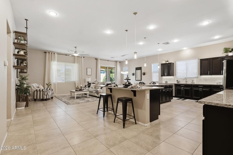 Listing details for 15758 Laurel Ln, Surprise, AZ 85379 : Step into effortless Arizona living in this beautifully appointed home in the heart of Surprise, just minutes from the area's newest shopping and dining. This move-in-ready features a split floor plan with 3 spacious bedrooms plus a versatile den with double doors. The stunning kitchen is the centerpiece, showcasing neutral granite countertops, stainless appliances, and an oversized island perfect for gathering and entertaining! Step outside to your low-maintenance turf backyard complete with a built-in BBQ and relaxing fire pit and sitting area--ideal for enjoying Arizona evenings. Handsome upgrades include farmhouse-style fixtures, upgraded mirrors and flooring. Located near top-rated schools in a desirable Surprise community, this home truly checks all the boxes, and then some!