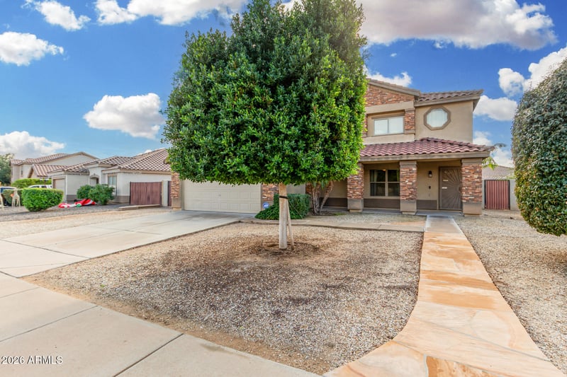 Listing details for 15811 Port Au Prince Ln, Surprise, AZ 85379 : Gorgeous 5-bedroom home with POOL in Greenway Parc at Surprise awaits you! Displaying a manicured landscape, RV gate & parking, 2-car garage, stone accent details, & a cozy front porch. The fabulous interior features abundant natural light, neutral paint, tall ceilings, and carpet & tile flooring t/out. Great floor plan with a formal living room and an inviting family room that opens to the kitchen! SS appliances, quartz counters, a pantry, ample white cabinetry, a subway tile backsplash, and a center island make up the culinary space. The large main bedroom is downstairs! It features a walk-in closet and an ensuite with dual sinks. All secondary bedrooms are upstairs, along with a versatile loft. Enjoy the backyard oasis with a covered patio, storage shed, and a sparkling pool! Just WOW!