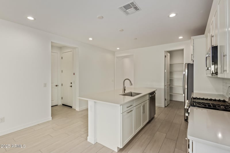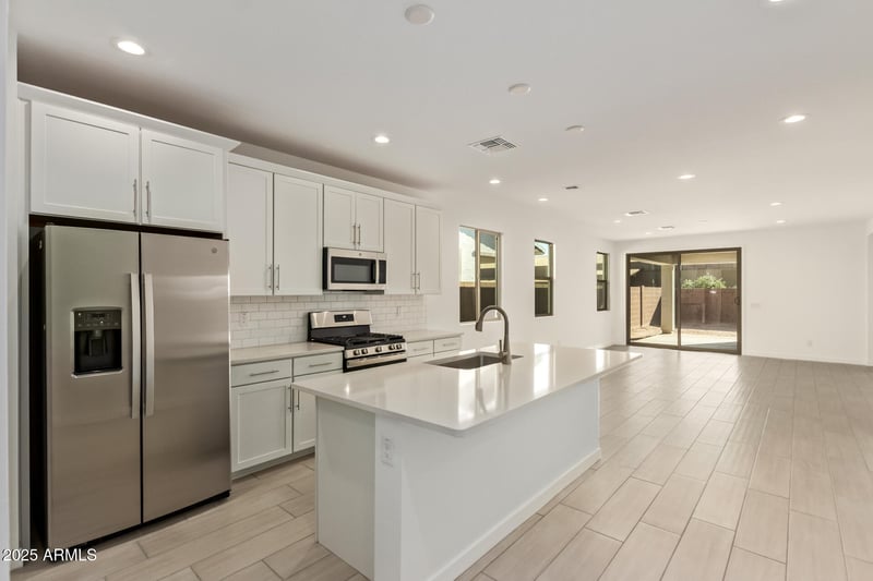 Listing details for 15829 Vogel Ave, Goodyear, AZ 85338 : Explore this thoughtfully designed Sunstone floorplan featuring 3 bedrooms and 2 bathrooms. This home includes a study and teen room with a functional open layout. The kitchen features a gas stove, quartz countertops, stainless steel appliances, 42'' upper cabinets, a tile backsplash, and a walk-in pantry. The spacious primary suite includes dual walk-in closets, dual sinks, and a separate water closet in the bathroom. Additional features include stone tile flooring, a large covered back patio, and ceiling fan prewiring in select rooms.