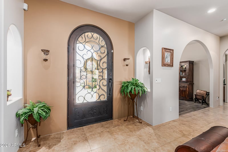 Listing details for 15835 Eagles Nest Dr, Fountain Hills, AZ 85268 : Stunning Santa Barbara-Style Custom Home with Full Casita, Preserve Views & Collector's Garage. Showcasing timeless character, mountain views, and meticulous craftsmanship throughout. This pristine property looks out to McDowell Mountains creating a serene setting and beautiful vistas. The front courtyard welcomes you with mature trees, and landscaping. Gorgeous curb appeal is highlighted by a custom iron front door and railings. Inside, the home features solid alder interior doors and high-end finishes throughout. The spacious floor plan includes an oversized loft/bonus room and a main-level primary suite with direct access to the resort-style backyard. Designed for entertaining or family, the chef's kitchen features alder cabinetry surrounding a large granite island, a 48"Sub-Zero refrigerator, 48" professional gas range, ice maker, and spacious walk-in pantry. The resort-style backyard features a full outdoor kitchen, fireplace, TV, and a fountain, creating the perfect space for relaxing or entertaining. A rare full casita with its own kitchen provides ideal accommodations for guests, extended family, or private work space. Car enthusiasts will appreciate the impressive 6-cargarage, offering exceptional space for car collectors and hobbyists. The property also includes RV access through double gates, paver pad accommodating up to a 32-foot RV. Energy-efficient upgrades: Owned SunRun solar panels, low-E dual-pane windows, and Coleman (2022) HVAC systems contribute to lower utility costs and environmentally conscious living. A proposed luxury Toll Brothers neighborhood is planned adjacent to the home, while the property directly across is proposed to remain a desert vista. The area is currently under rezoning consideration with the Town of Fountain Hills.