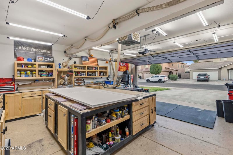 Additional highlights include a newer A/C system and a 3-car garage, with the two-car portion separated and converted into a workshop featuring additional electrical, a utility sink, extensive cabinetry, and a 220V outlet for EV charging or power tools.