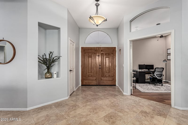 Listing details for 16001 17th Way, Phoenix, AZ 85022 : Welcome home to this beautifully designed residence with a 3-car garage and low-maintenance curb appeal. Inside, enjoy a flowing layout with tile flooring, formal living and dining areas, and a versatile den. The light-filled family room features a cozy fireplace and opens to the eat-in kitchen with granite countertops, stainless steel appliances, tile backsplash, ample cabinetry, and a large island with breakfast bar. The private primary suite offers backyard access and a spa-like ensuite with dual vanities, soaking tub, walk-in shower, and walk-in closet. Step outside to a backyard oasis with covered patio, multiple seating areas, and a sparkling pool—perfect for entertaining and everyday Arizona living.