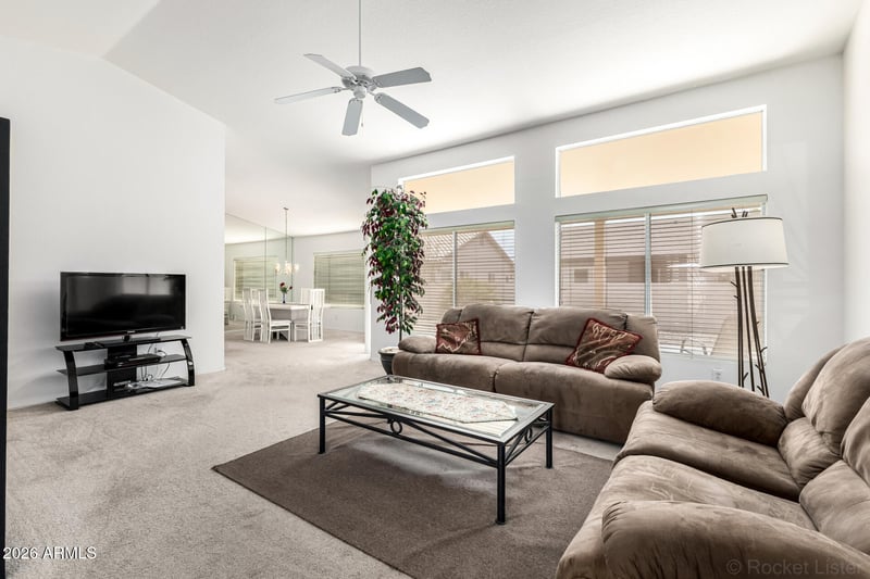 Listing details for 1601 Hazeltine Way, Chandler, AZ 85249 : Welcome to your serene retreat! Step inside an open and airy living space bathed in natural light, featuring elegant vaulted ceilings. The heart of the home is a spacious kitchen boasting neutral cabinetry, white appliances, and the flexibility of both formal dining and a casual eat in area. Retreat to the primary suite, a private oasis with a walk in closet, dual sink vanity, walk in shower, and a private exit to the back patio. Storage is effortless in the 2.5 car garage with epoxy floors and built in cabinets. Enjoy peace of mind with a newer roof (2018), water heater (2020), and 2025 HVAC with warranty. Outside, the low maintenance yards and covered patio offer peaceful privacy. Located in a vibrant community with tons of amenities!