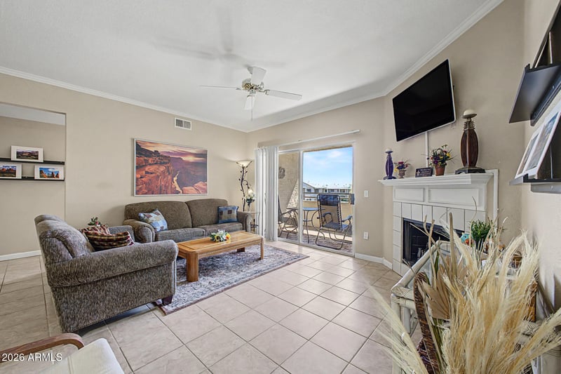 Listing details for 16013 Desert Foothills Pw #2156, Phoenix, AZ 85048 : Live the resort-style lifestyle at San Simeon Condominiums! This stylish 2-bedroom apartment features an open-concept layout with tile flooring, high ceilings, crown molding, and a cozy fire place perfect for relaxing. Enjoy a private balcony overlooking the community pool, ideal for morning coffee or unwinding after a long day. The modern kitchen offers ample cabinetry, built-in appliances, and a spacious peninsula for casual dining. The primary suite includes a walk-in closet and private bath, while the second bedroom is perfect for guests or a home office. Includes covered parking and a garage. Resort-style amenities feature a pool, spa, fitness center, clubhouse, and scenic lake. Conveniently located near dining, and major freeways perfect for low-maintenance living! New AC!