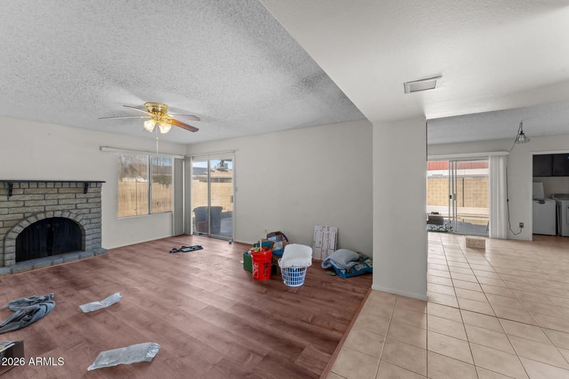 The floor plan features a spacious living area with a fireplace, creating a solid foundation for a future redesign. The home includes a 2-car garage and a private backyard with a pool, offering strong upside for resale or rental once updated.