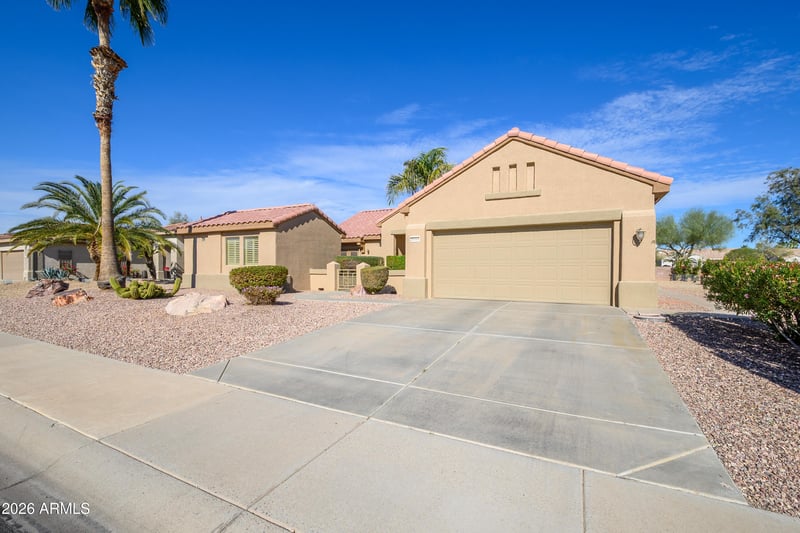 Listing details for 16068 Quail Creek Ln, Surprise, AZ 85374 : Sun City Grand Resort Living, Experience premier 45+ resort living in a community featuring four championship golf courses, multiple recreation centers, and diverse social clubs. This meticulously maintained home offers an extended garage with golf cart parking and a private guest Casita/craft room. Significant recent upgrades include a new roof (2025), A/C (2019), exterior paint (2021), and irrigation (2023). The interior is finished with new tile flooring, custom moldings, and professional storage systems by The Closet Factory. Complete with stainless steel appliances and a 2025 vacation mailbox, this home is move-in ready and designed for an active lifestyle.