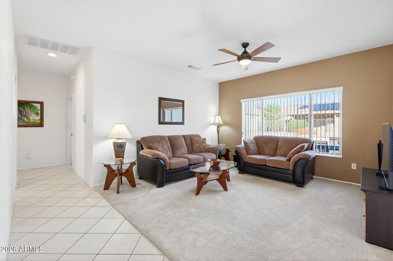 Listing details for 16096 Copper Crest Ln, Surprise, AZ 85374 : Perfect home for a winter escape or full-time living in the resort community of The Grand. Home features tile floors on the diagonal & carpeting in the bedrooms to add a cozy touch. The kitchen has a newer SS refrigerator and BRAND NEW SS dishwasher + oak cabinetry. A bay window in the breakfast nook creates the perfect place for a casual meal or your favorite beverage while soaking up the AZ sunshine. Or go out onto the extended patio w/pony wall for privacy and a gate to close it in for pets. Other upgrades include a bay window in the owner's suite, security front door, 4 ceiling fans, upgraded baths, raised panel doors & lots of garage storage. Water heater new in 2019 & HVAC NEW IN DECEMBER 2024!