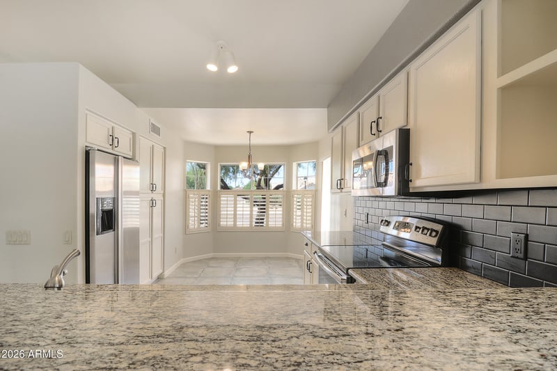 Listing details for 16101 Glendora Dr, Fountain Hills, AZ 85268 : Charming single-level home in the Glenbrook Community of Fountain Hills with a bright, open layout and stylish upgrades throughout. The home features large 24''x24'' tile flooring with no carpet, creating a clean and modern feel. The granite kitchen with stainless steel appliances opens to the main living areas, making it perfect for both everyday living and entertaining. Enjoy updated bathrooms, rubbed bronze fixtures, high ceilings, and beautiful wood shutters that fill the home with natural light. Step outside to a spacious backyard with a covered patio, ideal for relaxing Arizona evenings. Located in a great subdivision with sidewalks and a community pool, this home is also close to shopping, parks, and schools. Basic cable included for added convenience.