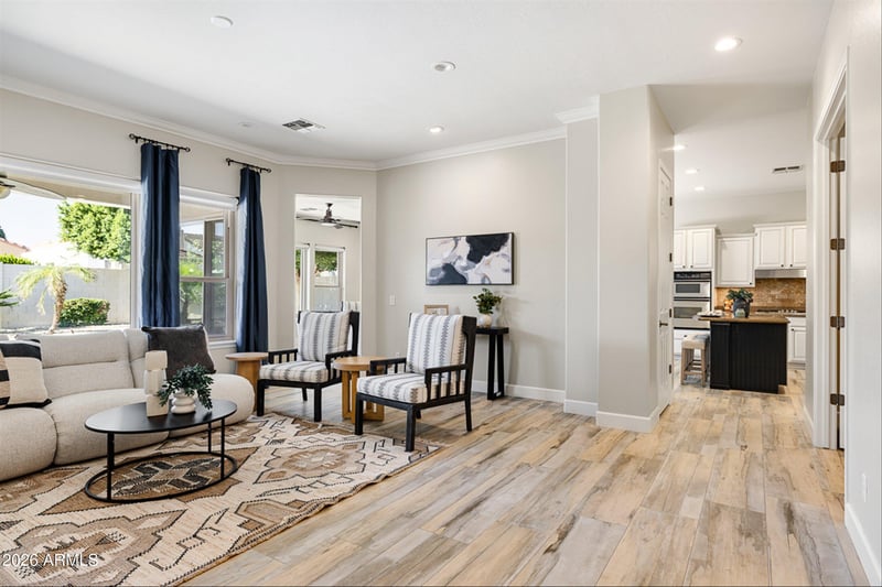 Listing details for 1613 Kaibab Dr, Chandler, AZ 85248 : Located within the prestigious gated community of Laguna Cove in Ocotillo, this move-in ready single-level residence offers effortless living in a highly sought-after setting. The split floor plan features generous living spaces that flow easily for both daily comfort and relaxed entertaining. An open kitchen connects seamlessly to the main living areas, while the private primary suite includes a spacious bath, walk-in closet, and direct access to the backyard. Outdoors, the resort-style backyard is designed for carefree enjoyment with recent updates including fresh exterior paint, new pool equipment, and updated decking. Set within the Ocotillo master-planned community, residents enjoy access to lakes, golf, dining, and nearby amenities. A turnkey opportunity combining privacy and loc