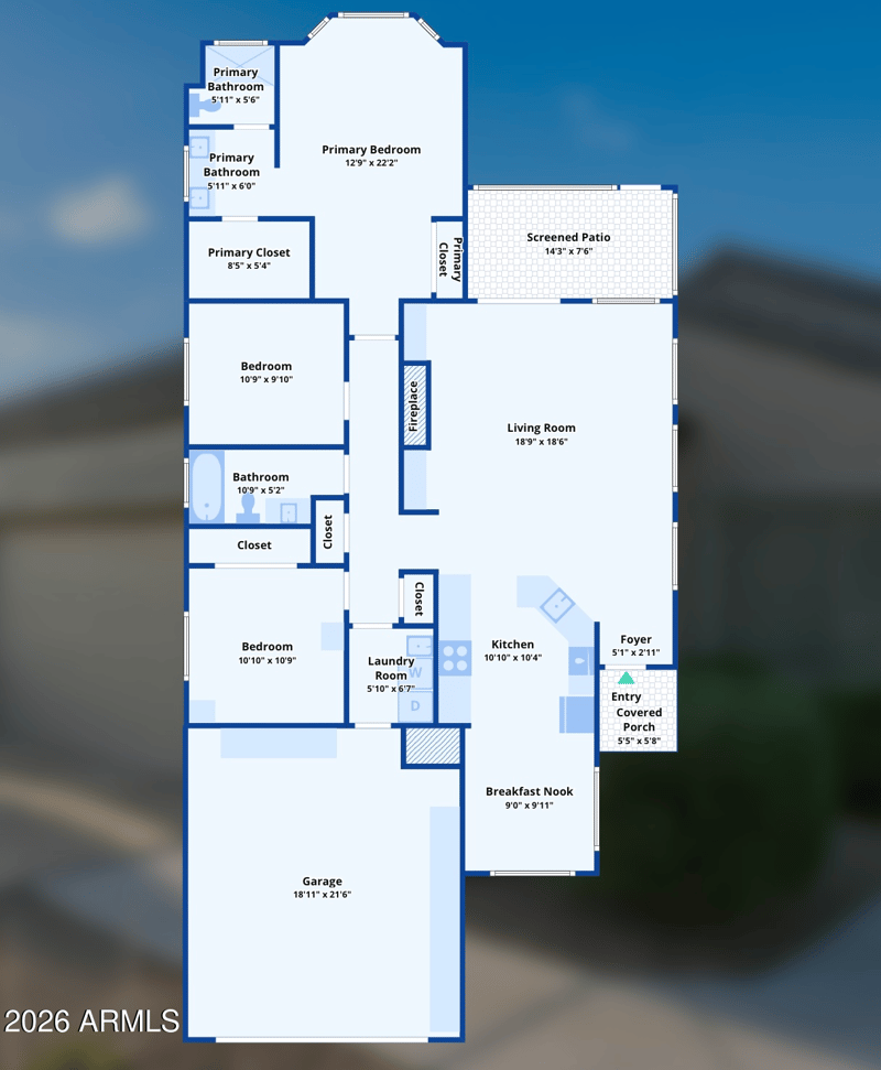 Your backyard oasis is complete with a screened in patio, additional patio with a sitting area, beehive fireplace, turf, and beautiful, mature landscaping. Fully fenced with a block wall + side gate.