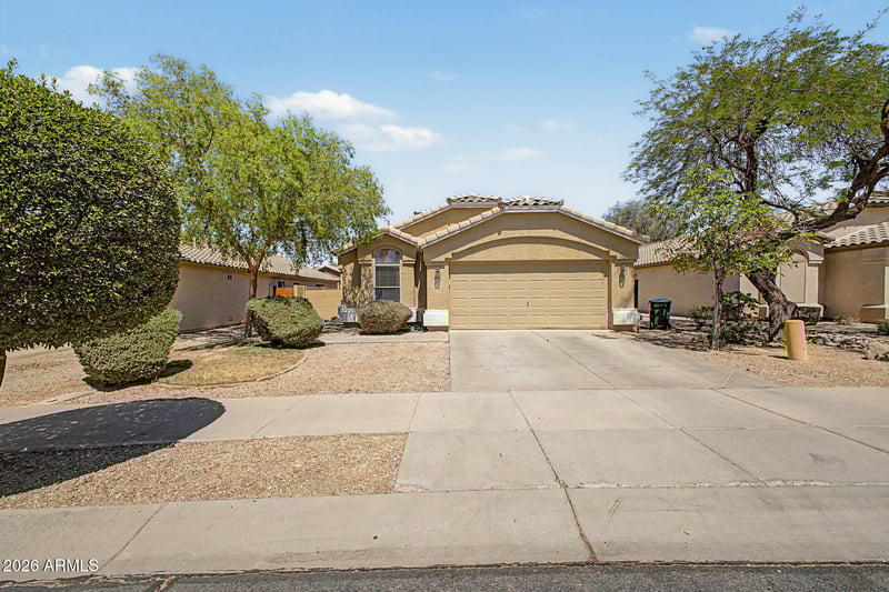 Listing details for 16156 Latham St, Goodyear, AZ 85338 : Welcome to your new home in Canyon Trails! This adorable home offers 3 bedrooms, 2 bathrooms, and a 2-car garage. Explore the bright and open interior, featuring vaulted ceilings, new flooring and interior paint. The kitchen features a breakfast bar with generous counter space, perfect for everyday living or entertaining. Get a good night's rest in the main retreat, including a private bathroom with double sinks and a separate shower & tub. Step outside to enjoy your extended covered patio- ideal for relaxing or hosting guests. Perfect home for a first-time homebuyer, vacation home or investment property!
