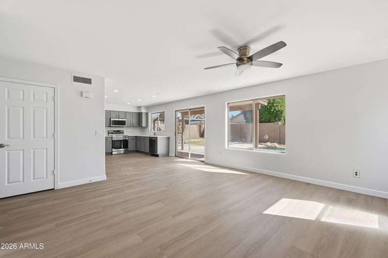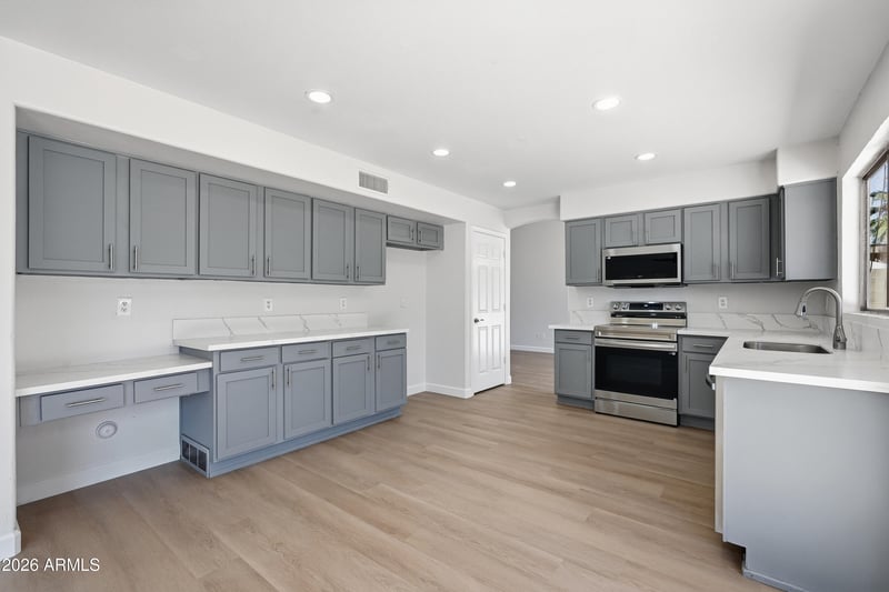 Listing details for 16173 159th Ave, Surprise, AZ 85374 : Beautifully updated and designed for both comfort and entertaining, this 3 bedroom, 2.5 bath home with a downstairs den offers a bright, modern interior and inviting outdoor living. Fresh interior paint, new LVP flooring, new carpet, new baseboards, and new light fixtures create a clean, cohesive feel throughout. The kitchen is a standout with updated cabinets, new quartz countertops, a new backsplash, and a full appliance package including a new range, microwave, and dishwasher. Bathrooms have been refreshed with updated finishes, and a new water heater adds peace of mind. The functional layout includes a den on the main level, perfect for a home office or flex space. Step outside to a backyard built for enjoyment, featuring a pool and built-in BBQ ideal for relaxing or hosting gatherings