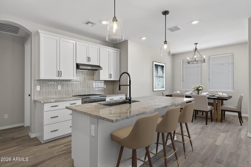 Listing details for 16180 Soft Wind Dr, Surprise, AZ 85387 : Fantastic New Home in a Resort Style Community! This brand-new 3-bedroom, 2-bath, 1,391 sq. ft. home is loaded with premium standard and optional upgrades, including synthetic turf landscaping front and rear, coach lights, paver driveway, garage door windows, and an upgraded front door. Inside, granite countertops, a stylish tile backsplash, upgraded tile flooring, two-tone paint, ceiling fans, window blinds, and a covered patio. Energy-efficient features include an electric car charging outlet, tankless water heater, soft water loop, Wi-Fi-enabled garage door opener, and Energy StarĀ® and Indoor airPLUSĀ® certifications for comfort and quality. Located in Escalante, a premier master-planned community thoughtfully designed with lifestyle in mind. Amenities include a resort-style pool...