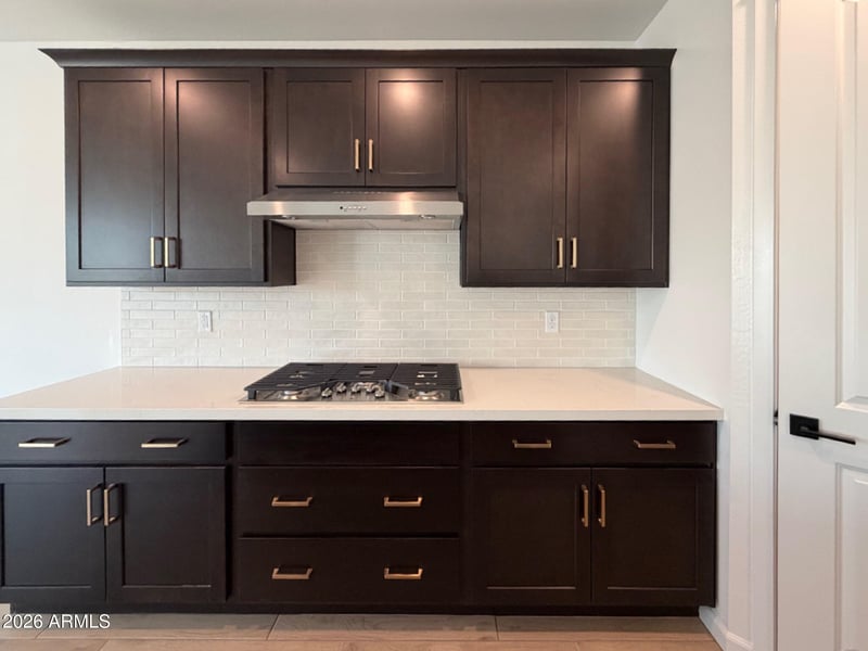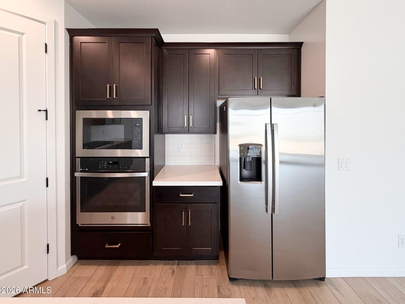 Listing details for 16206 Red Bird Rd, Surprise, AZ 85387 : Explore the elegant Larkspur floorplan, a stunning single-story home offering 1,949 sq. ft. of thoughtfully designed space. This home features 3 spacious bedrooms, 2.5 baths, a versatile den, and a 2-car garage, blending refined style with everyday comfort. At the heart of the home, the open-concept kitchen shines with a large center island, walk-in pantry, and premium stainless steel appliances including gas range, microwave, dishwasher, and refrigerator. As part of the Oxford Collection, it's beautifully finished with stained 42'' upper cabinets, quartz countertops, and a mosaic backsplash, with prewiring for pendant lighting to add a designer touch. Wood-look plank tile flooring flows through the main living areas, leading to an expansive great room that opens through a 4-panel sliding glass door to a covered patio, perfect for indoor-outdoor living and relaxed entertaining. Additional highlights include 2" faux wood blinds, a washer and dryer, and luxurious finishes throughout. Set within the gated Visara community in Surprise (163rd Ave & Visara Pkwy), residents enjoy resort-style amenities including a pool, basketball court, BBQ/picnic areas, tot lot, community trails, and quick access to Loop 303 and Route 60.