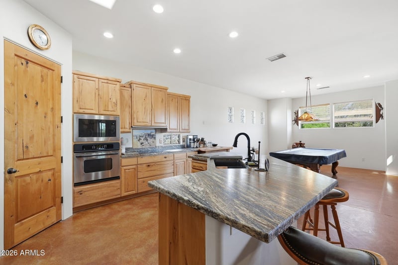 Listing details for 16206 Windstone Trl, Scottsdale, AZ 85262 : Fresh interior paint and reduced price just made this Desert Equestrian Estate THE best valued home in Rio Verde!! Where refined design meets wide-open desert living, this gated 2.5-acre premier horse property delivers a rare blend of luxury, function, and unforgettable scenery. Framed by sweeping Four Peaks mountain views, this custom home built IN 2004, is designed for those who want space to live boldly-both indoors & out. Equestrian enthusiasts will appreciate the 4-stall barn, tack room, large grain silo, riding arena, and round pen, all thoughtfully laid out with regularly maintained dirt roads ideal for horses & off roading. Whether training, trail riding, or simply enjoying the lifestyle, this move in ready home is ready to perform. including acid-stained concrete floors, custom hickory cabinetry, and a show-stopping kitchen with beautifully curated granite countertops. Entertain effortlessly at the wet bar with its stunning copper countertop, perfect for gatherings after a day outdoors. Step outside to your private resort-style oasis: a pool and spa with negative edge, built-in barbecue with concrete countertops, and an extended covered patio all positioned to capture breathtaking sunsets over the Four Peaks. This is where mornings are peaceful, evenings are golden, and every moment feels elevated. Additional highlights include a large RV shade structure, storage/workshop space, and an owned security system, offering both convenience and peace of mind. This is more than a homeit's a lifestyle property built for freedom, views, and unforgettable desert living.