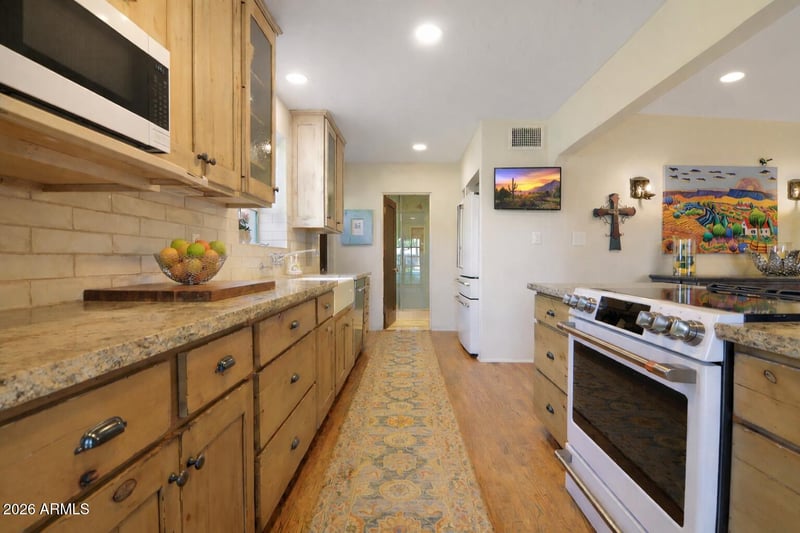 Listing details for 1621 11th Ave, Phoenix, AZ 85007 : Featured in Phoenix Home & Garden Magazine, this Spanish Revival residence is a study in warmth, proportion, and timeless design. Set within the coveted Encanto Palmcroft neighborhood, arrival begins at a private, flagstone front patio. Enter the foyer where arched passages, original wood floors, and intentional sight lines draw the eye toward a wood-burning fireplace and a side garden layered with color, texture, and the sound of water. The recently updated kitchen balances modern function with period-appropriate character, featuring new Cafe appliances, granite countertops, and earthy glazed tile. Adjacent formal dining and an open kitchen layout create an effortless flow for entertaining, enhanced by recessed lighting that softly illuminates the home throughout. Architectural detailslike coved ceilings, steel casement windows and California shuttersanchor the space with integrity and restraint. The home offers three bedrooms and two bathrooms, each conceived as a place of retreat. The primary suite opens through French doors to a poolside arbor. In the fully remodeled bath, enjoy a deep soaking tub, glass-enclosed shower, and custom dual vanity. A sun-filled office extends the living space outward, opening directly to the back patio. Designed by the seller, a landscape designer, the outdoor environment evokes a resort-like calm inspired by the Royal Palms Resort. A sparkling pool with raised water features is framed by mature trees, colorful stucco accents, custom hardscaping and flowering plantings. An outdoor kitchen beneath a vine-covered arbor and professionally installed landscape lighting complete the setting. This private oasis is as inviting in the evening as it is by day. A two-car garage and extended driveway provide generous parking. All of this set within Phoenix's urban cultural core. You are moments from Encanto Park and Golf Course, the light rail, the Phoenix Art Museum, Downtown, hospitals and an array of local dining and shopping. 1621 North 11th Avenue is a home composed with care, intention, and a deep respect for place. Welcome home in Encanto Palmcroft!