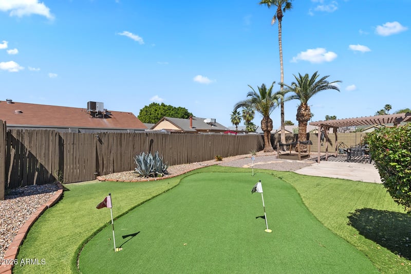 Listing details for 1623 Citation Ln, Chandler, AZ 85224 : Discover this stunning Spanish-style single-level home that beautifully combines timeless charm with modern upgrades! As you enter, you'll be greeted by spacious living areas adorned with durable wood-look tile flooring, seamlessly transitioning to the cozy bedrooms fitted with luxurious plush carpet. The updated kitchen is a perfect marriage of functionality and elegance, showcasing gorgeous granite countertops paired with brand-new stainless steel appliances. Both bathrooms have been tastefully renovated, infusing a fresh and welcoming atmosphere throughout the home. The garage enhances its appeal with professionally finished epoxy floors, offering a sleek and easy-to-maintain surface. Step outside to an exquisitely landscaped backyard that boasts a covered patio and a private putt green - ideal settings for both relaxation and entertaining. You'll appreciate peace of mind with significant updates, including a new water heater installed in 2025, an HVAC system replaced in 2018, and a roof updated in 2012. This home is a true sanctuary of comfort and charm, ready for you to make it your own!