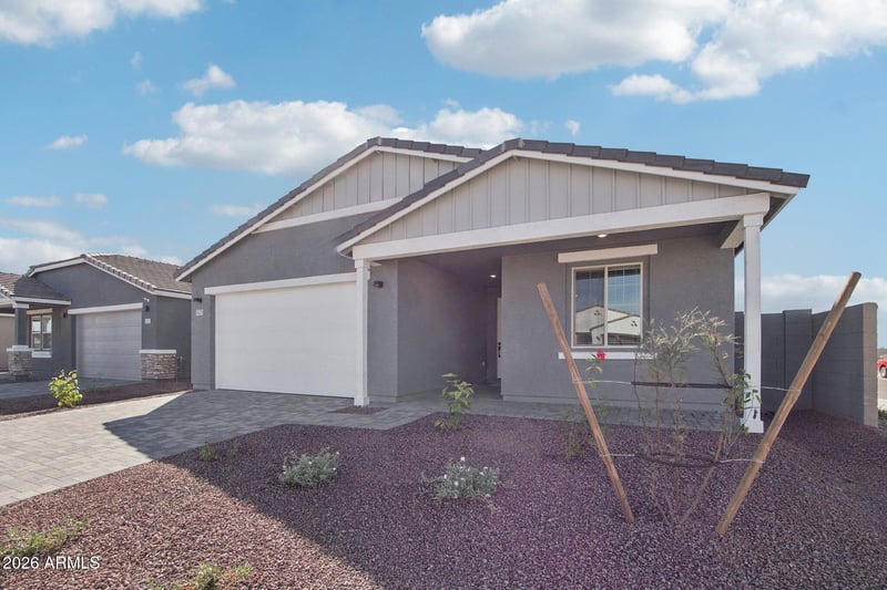 Listing details for 16231 Bajada Rd, Surprise, AZ 85387 : Explore the Marigold floorplan, an open concept 3 bed, 2 bath + den with a 2-car garage and Farmhouse-style exterior. Designed with the Artisan Collection by Ashton Woods Studio, this home features a 12' sliding glass door, blinds, refrigerator, laundry room, and soft water loop. Located in the gated Visara community in Surprise (163rd Ave & Visara Pkwy) with amenities including a pool, basketball court, BBQ/picnic areas, tot lot, community trails, and quick access to Loop 303 & Route 60.