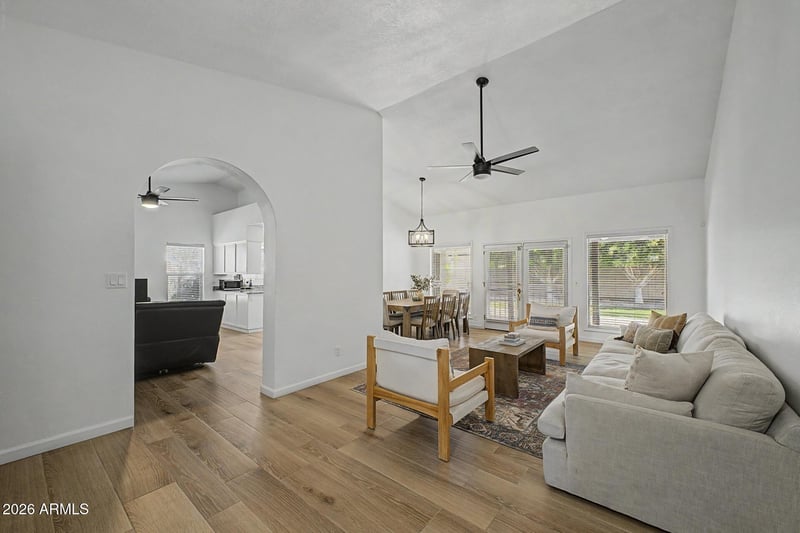 Listing details for 1625 Tamarisk Dr, Chandler, AZ 85224 : Recently remodeled 4 bed, 2 bath home with no HOA. Features include 16 SEER Trane AC (2021), new roof (2022), and newer dual-pane windows. Vaulted ceilings with formal living/dining plus a separate family room. Eat-in kitchen with bay window. Spacious primary suite with walk-in closet, en-suite bath, and backyard access. Laundry room with built-in cabinets; washer/dryer convey. Two-car garage with insulated door and extra storage. Extended front parking pad provides additional space for vehicles and toys, plus theres an RV gate. Large backyard with new shed, mature ficus trees for shade, and paver patio. Updates include porcelain tile flooring, granite counters, lighting, vanities, toilets, and updated shower with glass enclosure.
