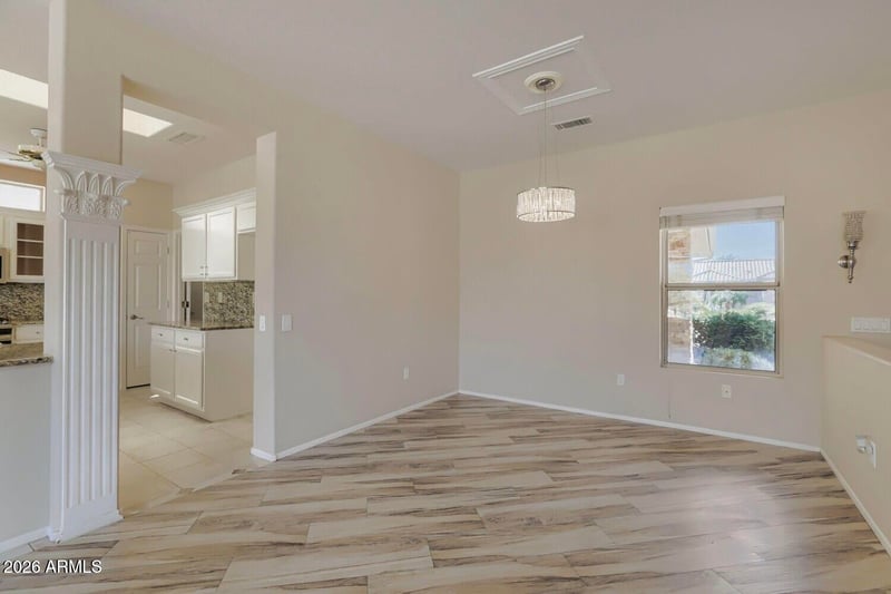Listing details for 16252 Manzanita Dr, Surprise, AZ 85374 : Welcome to this beautifully maintained home in the highly sought-after active adult community of Sun City Grand . This charming 2-bedroom, 2-bath residence offers a bright and open floor plan designed for comfortable living and effortless entertaining. Step inside to find neutral wood-look tile flooring, a skylight that fills the home with natural light, and an inviting, airy atmosphere throughout. The updated kitchen features white cabinetry, granite countertops, a stylish backsplash, and charming updated fixtures.