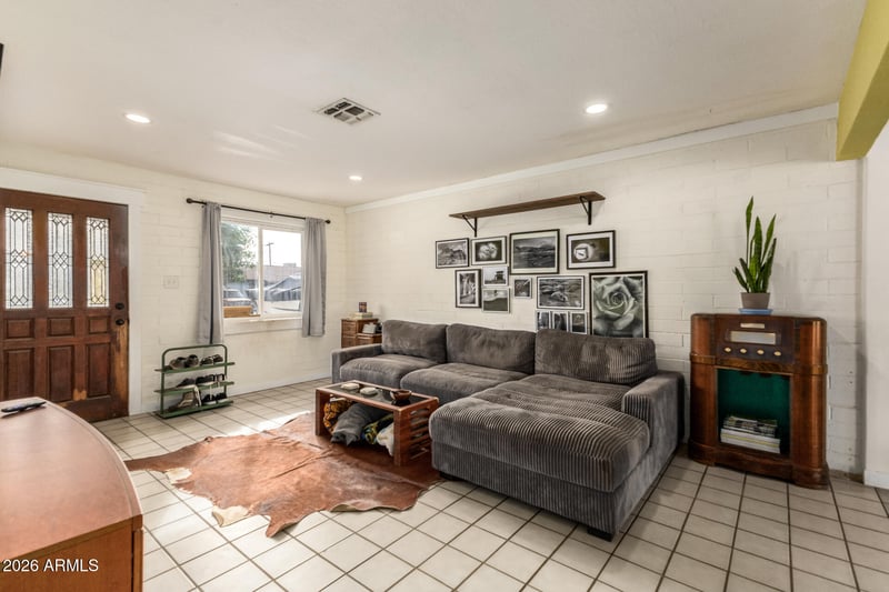 Listing details for 1626 North Ln, Phoenix, AZ 85021 : Home, sweet home! This charming 3-bedroom property greets you with a practical RV gate and ample driveway parking. Inside, the living room features a warm palette, recessed lighting, and durable tile flooring for easy maintenance. You'll also find a formal dining room and a well-equipped kitchen with a striking tile backsplash. All bedrooms are cozy and well-sized, offering a private retreat for a good night's sleep. Venture out onto the backyard, which includes a sizeable covered patio, a shed for additional storage, a private workshop and another RV gate that leads to the alley. Don't miss out on your chance to own this home!
