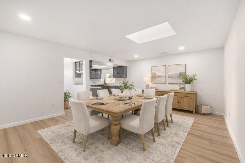 Listing details for 16275 30th Dr, Phoenix, AZ 85053 : NO HOA! HUGE nearly 1/4 acre lot! LIGHT, BRIGHT, RECENTLY REFRESHED! Lovely 4-bed home on quiet cul-de-sac! You're greeted by a 2-car garage, a sizeable front yard, & charming brick accents. Discover a sunken living room w vaulted ceilings, a soothing palette, wood-look flooring, & a cozy brick fireplace. The well-appointed family room has skylights for abundant natural light. Culinary adventures await in the kitchen, equipped w solid surface counters, a walk-in pantry, a serving window, & ample wood cabinets w crown moulding. Enjoy warm afternoons in the sunroom, perfect for enjoying the warm Arizona weather year-round. The main bedroom has an ensuite w dual sinks & walk-in closet. Spend enchanting evenings in the backyard, complete with a spacious covered patio. Don't miss out!