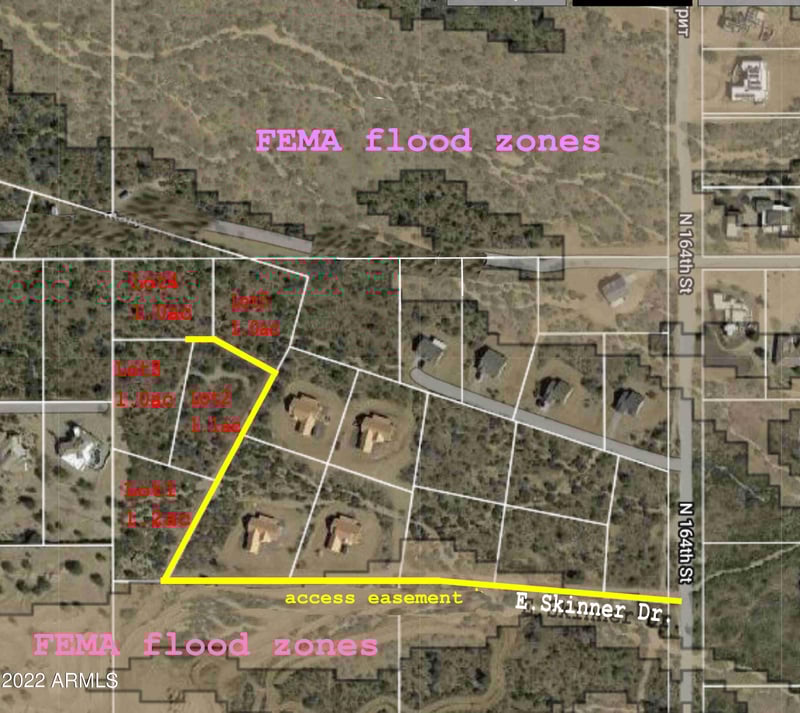 Listing details for 162xx5 Skinner Dr #5, Scottsdale, AZ 85262 : This 1 Acre lot is in the quiet area. The entrance to the lot is from 164th Street. This lot does not have AE flood. A recent MLD survey is available under documents tab. Please see the pictures and documents tab for the lot location. The well has 5 shares, well will need a filter. PLEASE Do not access off of Bob White. Follow the directions on the listing.