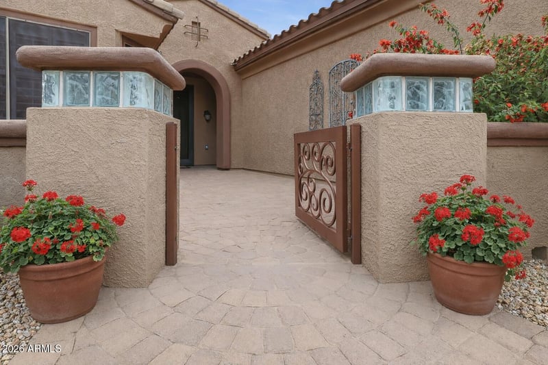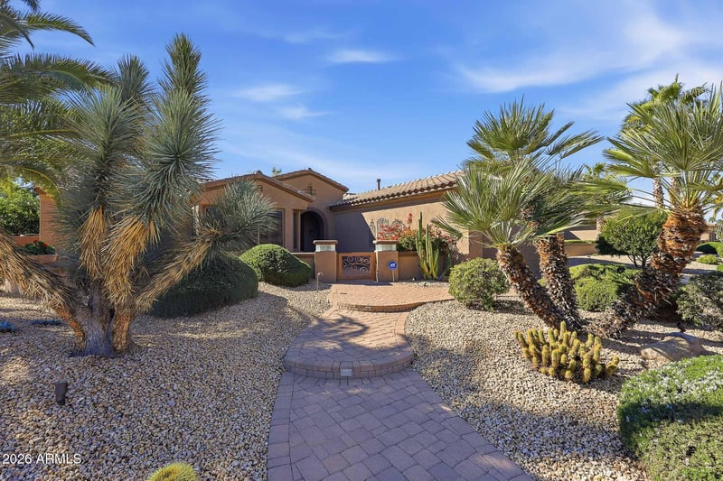 Listing details for 16305 Bridal Veil Ln, Surprise, AZ 85387 : Truly exquisite! This highly desirable Borgata is beyond special. Brilliant curb appeal greets guests as they step up to door through the expansive front courtyard with artistically set pavers. Heavy-weight upgraded screen door leads to open floor plan and elegant kitchen which will satisfy even the most particular of tastes. Quartz counters, GE Profile stainless appliances, RO, leaded glass pantry door, wine fridge, and highly upgraded cabinetry all contribute to the kitchen's beauty. Bathrooms thoughtfully renovated in 2018 and 2019 featuring rainfall shower heads and walk in shower in primary bedroom. LG Washer and Dryer in laundry with upgraded cabinets. Plantation shutters, 20 inch tile and wood flooring with wide base molding. New roof underlayment in 2024. (More....) New HVAC in 2020, 3 car garage with epoxy floor, insulation, and mini split. Robust Pella Sliding door with in-window blinds and retractable screen opens to backyard paradise with pavers, built in BBQ, lush plantings, solar shades for windows and (motorized) sun shades for patio. Electronic door locks and many other upgrades. This home is an entertainers dream. Don't miss this showplace with something for everyone.