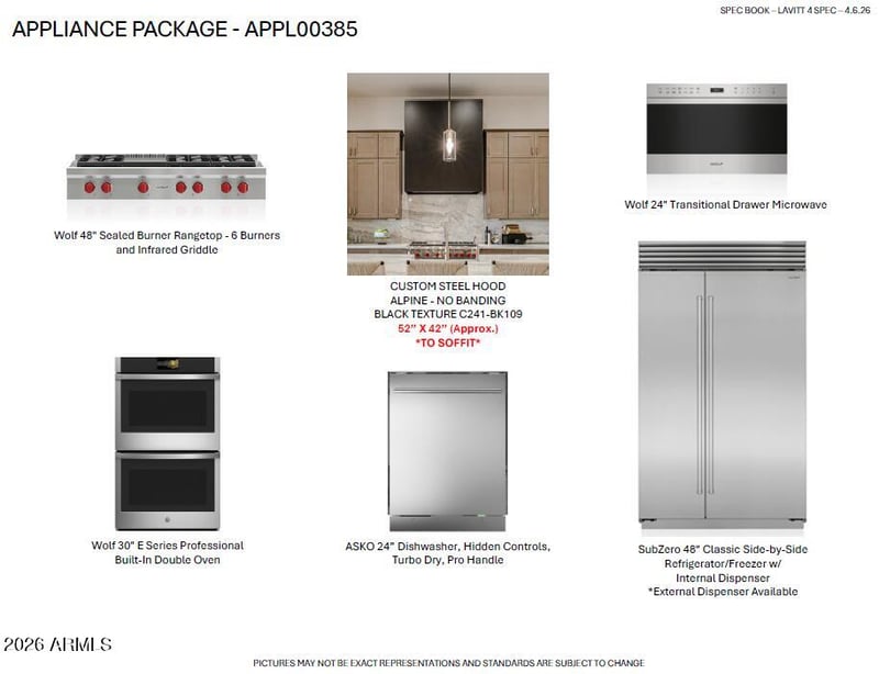 Listing details for 1632 Lavitt Ln, Phoenix, AZ 85086 : Luxury Full Spec Home to-be-built. Features include pivot entry door, custom island kitchen - Wolf/SubZero appliances 48'' gas 6-burner cooktop, Dbl. Oven, 48'' built-in Refrigerator, microwave-drawer, Asko dishwasher, Upgraded Metropolis cabinets and Quartz waterfall countertop. Includes paver driveway, oversized three-car tandem garage, and 49' RV garage. 4 bedrooms plus an office, 4.5 bathrooms; Grand guest suite with its own living area, Luxurious owner's suite with freestanding tub, walk-through double shower, floating vanities, and oversized walk-in closet. Laundry room sink & cabinets. Details include 90/10 smooth walls, 8' doors, & 12 ft. ceiling. 2x6 frame exterior, fully sheathed walls, spray foam insulation & post tension foundation. Photos & options are of a completed home.