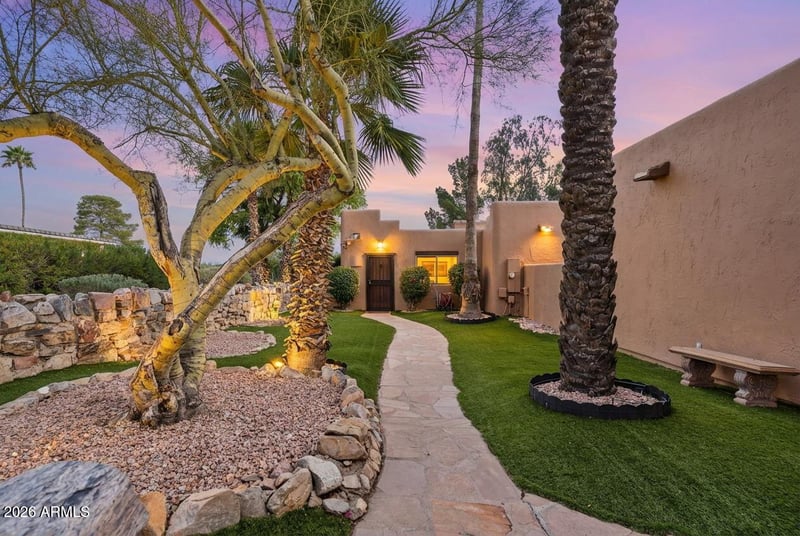 Listing details for 16320 Fountain Hills Pl, Fountain Hills, AZ 85268 : Experience authentic Arizona luxury in this custom Santa Fe-style home, perfectly situated on a private, cul-de-sac lot with breathtaking mountain views. This 2,041 sq. ft. residence blends Southwestern charm with modern amenities, featuring a ''spa sanctuary'' master bath with a skylit wet room, deep soaking tub, and granite vanities.