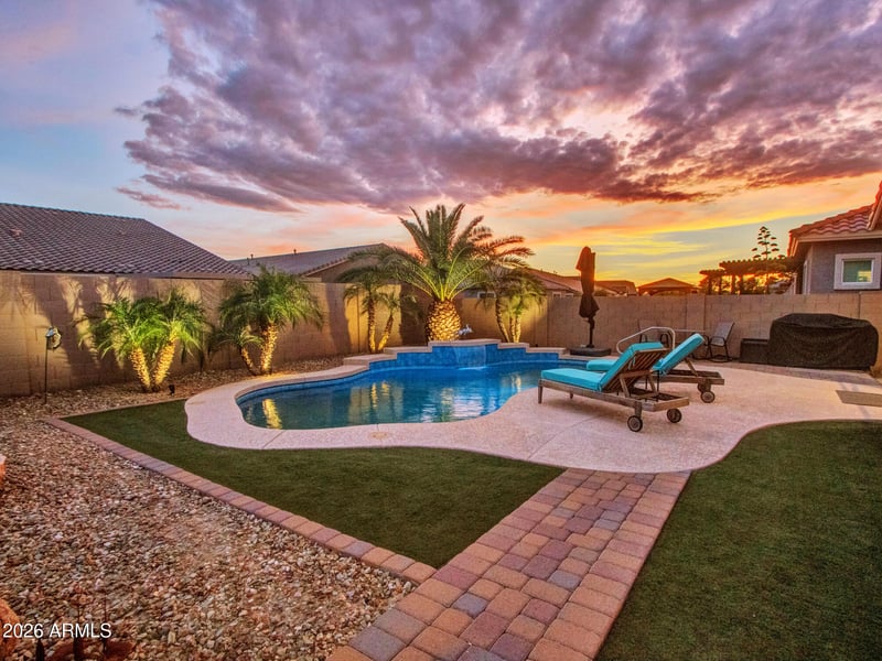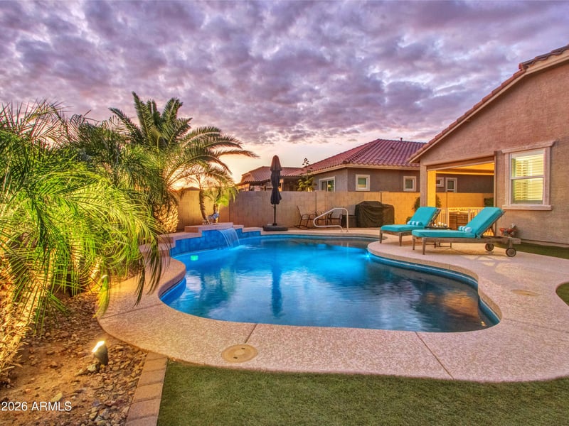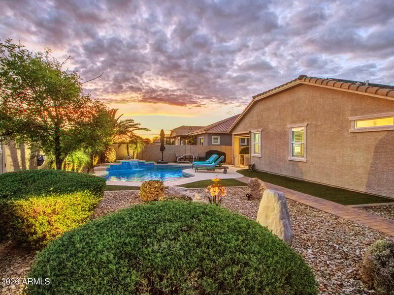 Listing details for 16385 Soft Wind Dr, Surprise, AZ 85387 : Beautiful Lennar Next GenĀ® ''Home Within a Home'' in the sought-after Asante master-planned community in Surprise. This rare floor plan includes a private suite with its own entrance, living area, kitchenette, bedroom, bathroom, and laundry--perfect for multi-generational living or guests. Enjoy Arizona outdoor living in the backyard featuring a sparkling private pool with a new Pentair heater and covered patio. The home also includes fully owned, paid-off solar, offering energy efficiency and long-term savings. A unique combination of flexibility, comfort, and upgrades makes this home truly stand out.