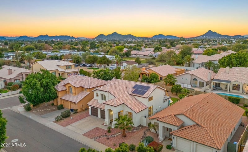 Listing details for 16406 39th Pl, Phoenix, AZ 85032 : Tucked away on a quiet cul-de-sac, this beautifully maintained home blends refined design with resort-style living. The open-concept floor plan features soaring vaulted ceilings and two spacious family rooms, ideal for both entertaining and everyday living. A striking stacked stone fireplace anchors the main living area, while the kitchen and breakfast nook are filled with natural light from a charming bay window overlooking the backyard. Step outside to a private oasis with a sparkling pool and water feature, lush turf, putting green, and covered patio for year-round enjoyment. Solar panels add energy efficiency and long-term savings. Thoughtfully designed, this home offers elevated living in a peaceful setting.