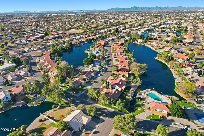 Listing details for 1644 Cindy St, Chandler, AZ 85225 : Don't miss this rare opportunity to own a home situated directly on the water in Chandler. Enjoy one of the most serene and peaceful backyard settings the area has to offer -- complete with mature trees, citrus, lush shrubs, and expansive green space that keeps the yard cool and inviting all summer long. Step inside to an open, airy layout featuring soaring vaulted ceilings, neutral tones, and classic Saltillo tile. The main home offers 3 bedrooms and 3 bathrooms, with the primary suite serving as a private retreat that spans nearly the entire second floor. The kitchen features butcher-block countertops, black appliances, and matching cabinetry for a warm, cohesive feel. Relax in the spacious great room with an attached den. Property also has a CASITA complete with its own bathroom