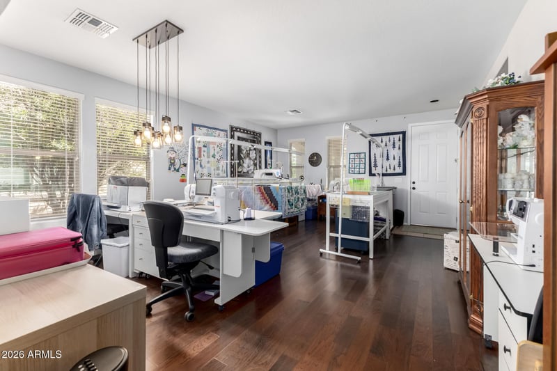 Enjoy the Arizona lifestyle in the beautifully landscaped backyard, highlighted by a large covered patio with elegant tile--perfect for relaxing or hosting gatherings.