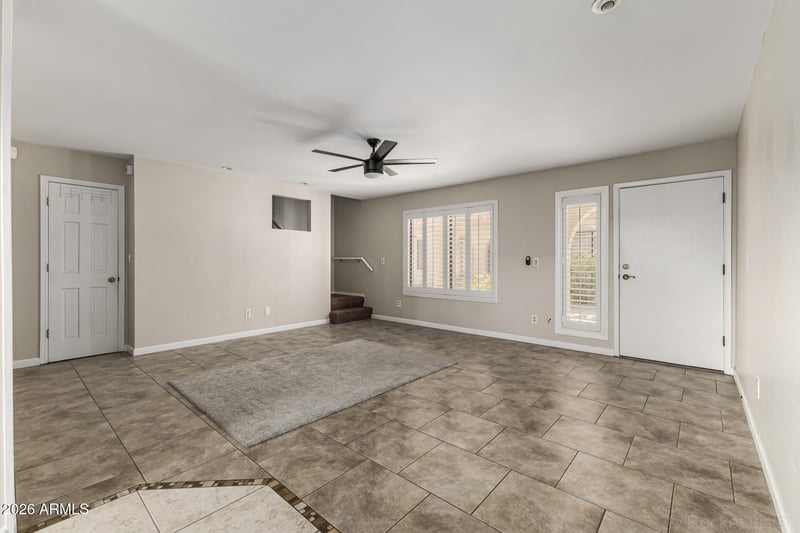 Listing details for 16510 Palisades Blvd #51, Fountain Hills, AZ 85268 : Welcome to this charming 2 bed, 1.5 bath poolside condo in the heart of Fountain Hills! Step inside to a bright, spacious family room with tile floors, freshly painted walls, and white window shutters. A half-bath and dining room sit just off the main living area. The updated kitchen features white cabinets, granite countertops, and stainless steel appliances. Step out to your large private patio perfect for enjoying the Arizona weather, with the pool and clubhouse just steps away. A separate heated spa adds a touch of luxury. Upstairs, both bedrooms offer walk-in closets and private balconies. The main bedroom includes direct bathroom access and a balcony overlooking the pool. Two covered parking spaces included.