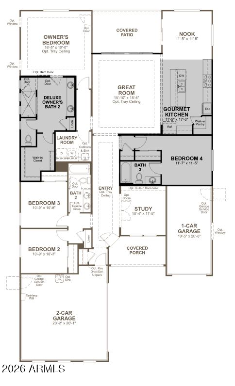 Listing details for 16526 Creedance Blvd, Surprise, AZ 85387 : Welcome to this exciting Townsend home, ready for quick move-in! Included features: a covered front porch; an elegant study off the entry; an impressive great room with center-meet patio doors; a gourmet kitchen boasting 42'' cabinets, quartz countertops, stainless-steel appliances, an island, a walk-in pantry, and an adjacent nook; a lavish primary suite offering a sizable walk-in closet and a private bath with double sinks and a walk-in shower; a convenient laundry; two secondary bedrooms with a shared hall bath; a fourth bedroom with a full bathroom; and a tranquil covered patio. This home also showcases 9'' x 35'' stone tile flooring, cultured marble countertops in the bathrooms, ceiling fan prewiring in select rooms, front yard landscaping, and concrete pavers at the driveway and walk