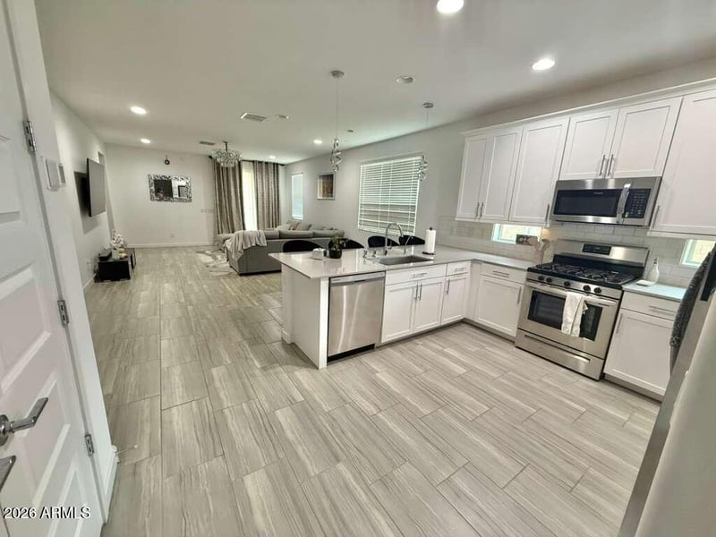 Listing details for 16535 Questa Dr, Surprise, AZ 85387 : Beautiful single-story home in the most growing neighborhood of Surpise City. This house features ample space for growing families. Four bedrooms lined up in a neat row which includes the owner's suite, and the additional bedroom near the entry offers an ideal space for overnight guests (totsl 5 beds). An open floorplan hosts the kitchen, dining room and Great Room with a spacious covered patio attached with big backyard space. This house comes with EV Charger, Smart Garage Opener and Moen Flo Smart Water Meter. Don't miss this great opportunity to own a beautiful home.