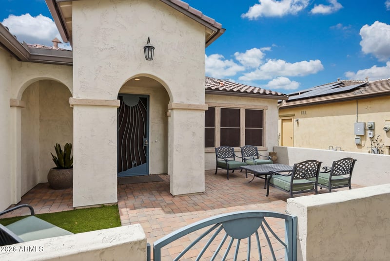 Listing details for 16536 179th Ln, Goodyear, AZ 85338 : Lakefront living, mountain views, and thoughtful upgrades throughout make this Legato a standout in CantaMia. Set on a premium lot overlooking the lake, this beautifully upgraded 3 true bedroom, double primary suite home offers the kind of lifestyle buyers dream about. The backyard is designed for relaxation with an extended patio, hot tub, mature landscaping, and artificial turf, all framed by peaceful water and mountain views. The open-concept floor plan features a spacious kitchen with granite counters, upgraded cabinetry, pendant lighting, tile backsplash, and upgraded appliances. Plantation shutters, recessed lighting in the office and great room, whole-house water filtration, water softener, a paver courtyard, iron gate & security screen door add both style and function. Garage AC! Located within the award-winning active adult community of CantaMia at Estrella, residents enjoy resort-style living surrounded by mountain and lake views. The impressive 29,000-square-foot Village Center offers indoor and outdoor pools, spa, fitness center, yoga and aerobics studios, creative arts spaces, café, wine bar, and a full calendar of activities.