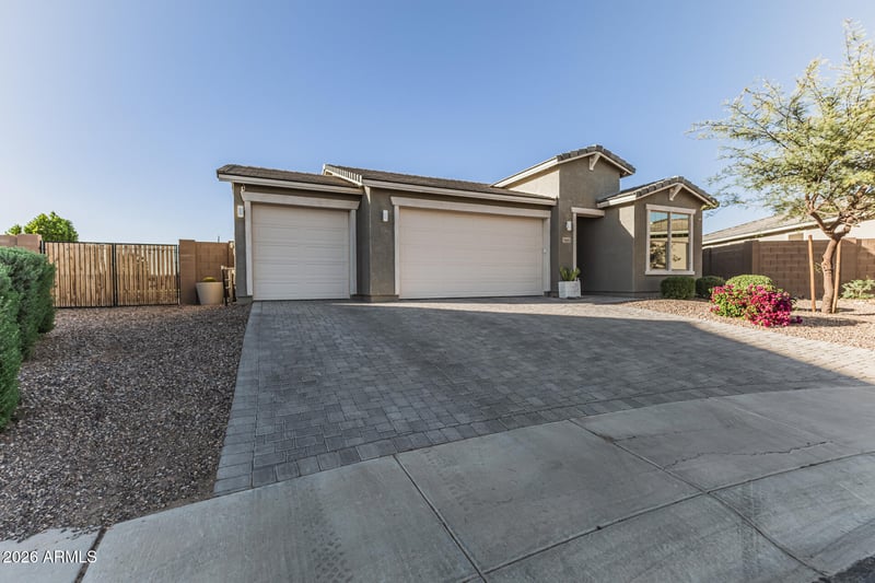 Listing details for 1656 Joelle Dr, Casa Grande, AZ 85122 : Welcome to resort-style living with mountain views and gorgeous Arizona sunsets! Situated on a premium oversized 14,000 SF lot, this move-in ready 3-bedroom + den/office, 2 bathroom home offers 2,039 SF and a 3-car garage. Inside you'll find modern finishes throughout including a beautiful kitchen with quartz countertops, GE slate appliances, plank tile flooring, and an open-concept layout. The home has been upgraded with smart home features inside and out, including voice-activated lighting, smart blinds, and more. The backyard is an entertainer's dream featuring a sparkling pool, 3,000 SF of turf, a concrete section with basketball hoop, variety of trees, and a gazebo perfect for relaxing or hosting gatherings. Conveniently located near I-10 and nearby shopping, dining, and schools.