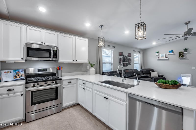 Listing details for 16574 Alameda Rd, Surprise, AZ 85387 : Welcome to this beautifully maintained home in the highly desirable Asante community - one of the area's most family friendly neighborhoods! This homes offers a bright and open layout, perfect for every day living. The modern, upgraded kitchen features sleek finishes, ample cabinetry, and flows seamlessly into the living and dining areas. Enjoy the spacious primary suite, plus two additional bedrooms - idea for guests, kids, or a home office. Step outside to an oversized backyard with plenty of room for outdoor entertaining. Asante offers parks, walking trails, and a strong sense of community all while being close to shopping, dining and freeway access. This move-in ready home checks all the boxes!