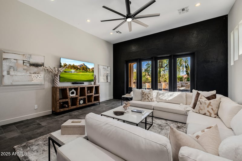 Your personal backyard oasis awaitsfeaturing an extended covered patio, travertine pavers, lush professional landscaping, and a heated saltwater pool and spa with five elegant water features. Whether you're hosting guests or enjoying a quiet evening, this outdoor retreat offers year-round resort-style living.